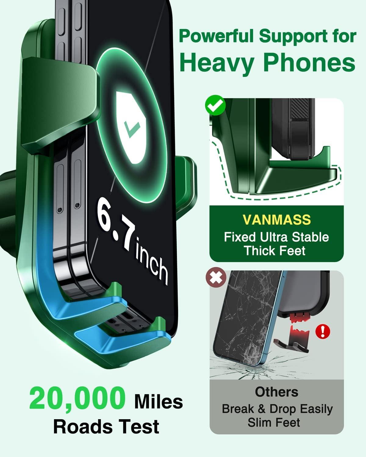 【VANMASS Upgraded BEST Phone Mount, Military-Grade Certified】Rated 4.5 from 18,000+ real users, this is US top rated high-grade car phone holder! Over past 8 years, VANMASS have listened to the voices of millions of users, rigorously tested to Military-Grade standards (stability, durability, security). Finally, we overcome all weaknesses to design this highest quality car mount. This item obtained military-grade shockproof certification No.GZMR230200285101